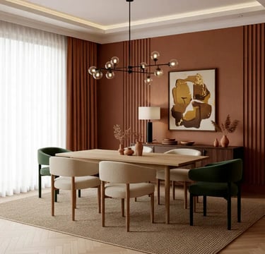 Earthy tones are at the heart of Winter 2026 interiors. Warm neutrals like beige, off-white, and sand provide a serene base, while brown, terracotta, and clay add depth and richness. Accent colors such as olive green, deep navy, or burgundy create contrast and visual interest without overpowering the space.