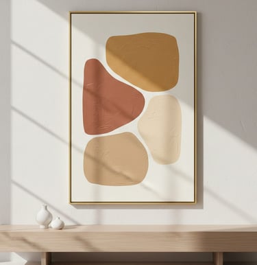 Wall décor is minimal and considered. Neutral prints, textured panels, or warm wooden frames complement interiors without overwhelming them.