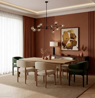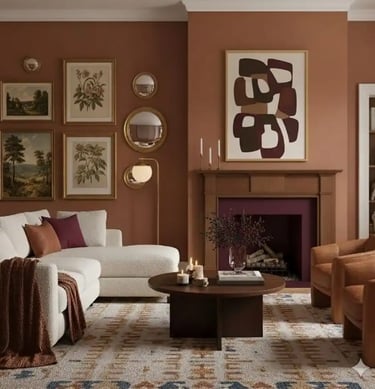 Layering these colors through furniture, textiles, and decorative elements produces interiors that feel grounded, cohesive, and timeless, reflecting the natural warmth and calm of the season.